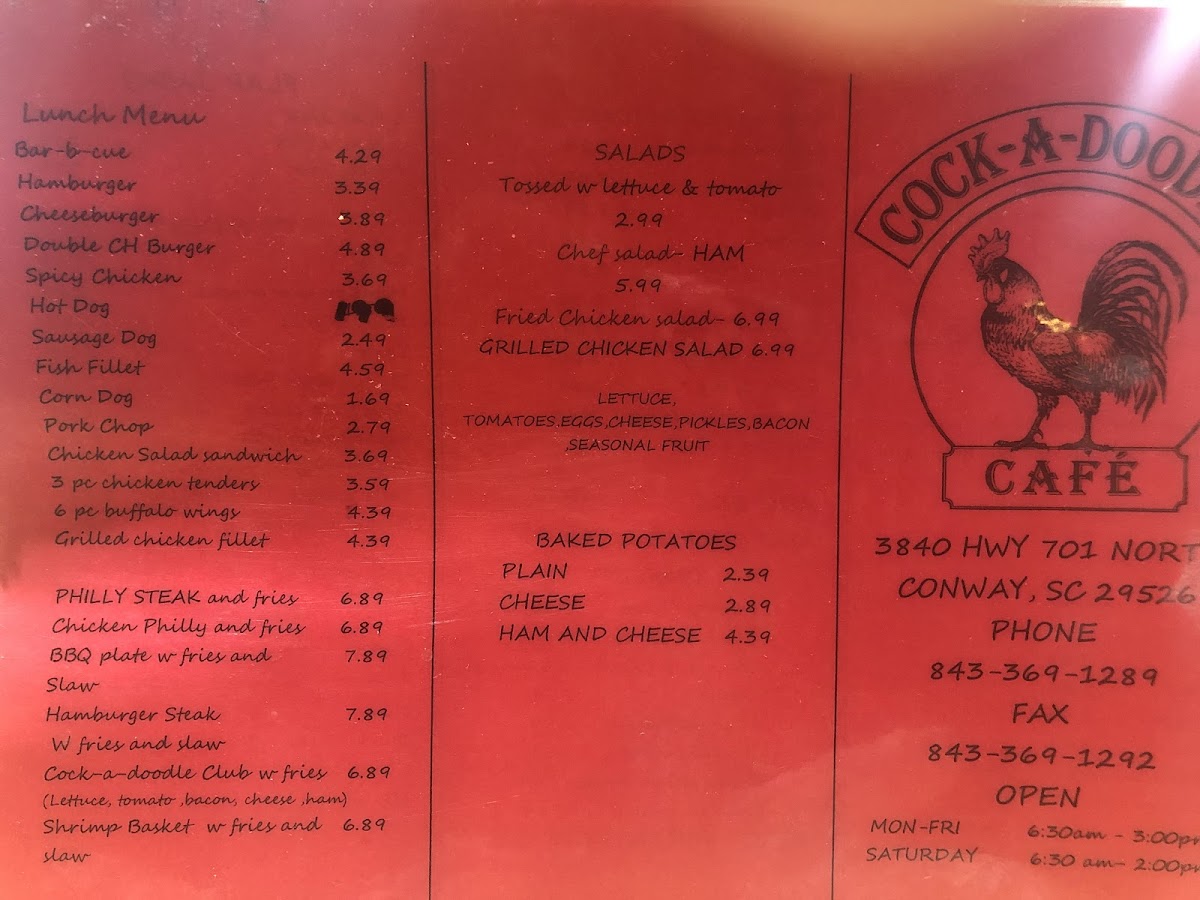 Welcome to Cock-A-Doodle Cafe - Conway, a charming eatery nestled at 3840 US-701 Hwy, Conway, SC. This delightful café exudes a cozy, small-town vibe, perfect for those seeking a relaxed dining experience. The menu caters to breakfast enthusiasts and offers a variety of options that promise comfort and flavor.